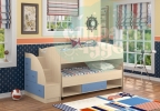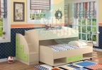 Кровать двухъярусная выдвижная Дюймовочка-4.3 беленый дуб Формула мебели - оригинальная модель, выделяющаяся на фоне других кроватей данного сегмента. Представляет собой невысокую конструкцию с двумя спальными местами и широкой лестницей, в торце которой помещены бельевые ящики. Основное преимущество Дюймовочки 4.3 - незначительная высота, на которой находится второй ярус, что делает ее безопасной для малышей от трех лет. Кроме того, нижний ярус снабжен полками и ящиком, и является полноценной кроватью, которую можно выдвигать из ниши и располагать отдельно. Мебель изготовлена из прочного ламинированного ДСП, устойчивого к ультрафиолету, влаге и механическим воздействиям, и покрыта по кромкам ПВХ, который сглаживает острые поверхности и препятствует проникновению воды в не ламинированную часть плиты.