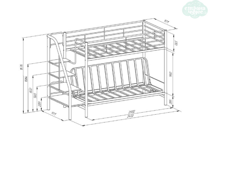 Нижний ярус данной модели представляет собой складной диван-книжку.