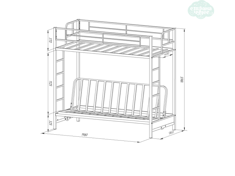 Нижний ярус данной модели представляет собой складной диван-книжку.